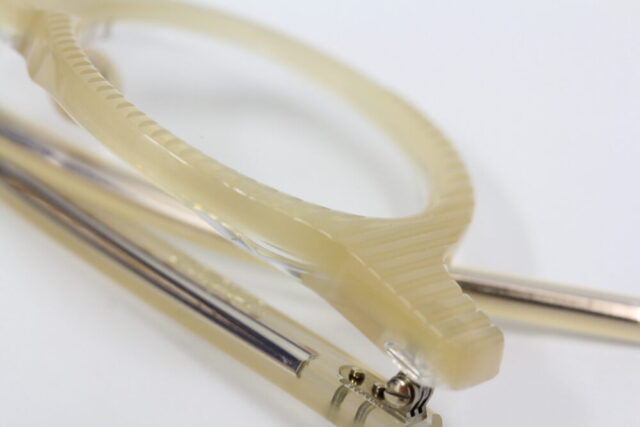 それが見えるようにテンプル内側にはクリア生地が使用されています。