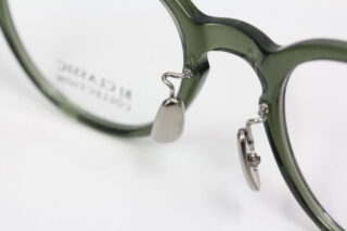 テンプル形状は同じくセルロイドシリーズのフレームP-501等とは違い、やや生地は薄めに形状も変わっています。