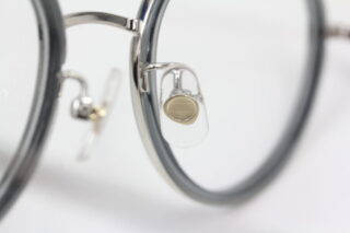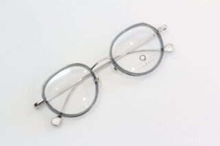 メタル枠はシルバー、レンズを囲む枠は透明感のあるグレー。