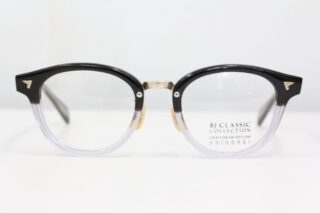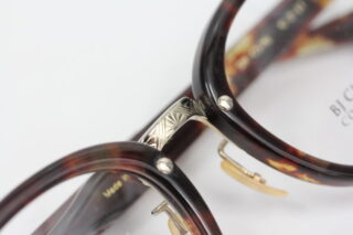 前回はプラスチックの芯張りフレームでしたが、今回はブリッジ部分にメタル素材を使ったコンビフレームとなります。