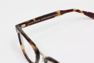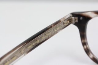 テンプルの内側はべっ甲柄、外側に透明の生地を張り合わせることで芯金を前面に見せる仕様になっています。