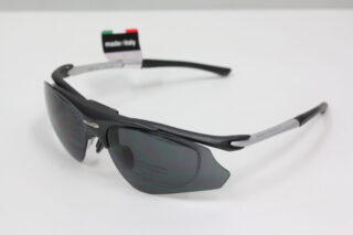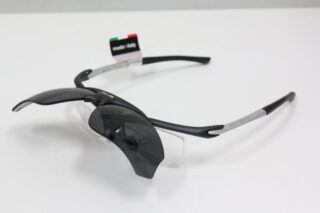 やや幅狭めでタイトなかけ心地の跳ね上げ式サングラス。度付き対応可能な仕様になっています。