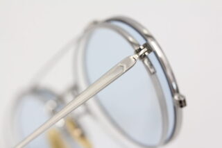 クールなシルバーのフレームに目がしっかり透けて見える、薄め寒色系ブルーカラーが入ったサングラスです。