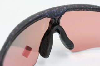 鼻パッドやイヤーソックには汗などの水分を含むことでフィット感が増すOAKLEYの原点ともいえる特許素材”Unobtainium”を使用。