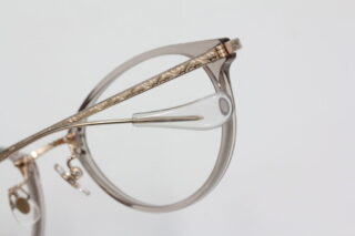 フロントからテンプルに続くメタルパーツ、テンプル本体にも細かな彫金を施し横顔も美しく演出してくれます。