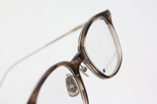 レンズ周りの線を細くすることで、肌馴染みの良さをキープしつつ程よいメガネの存在感に。