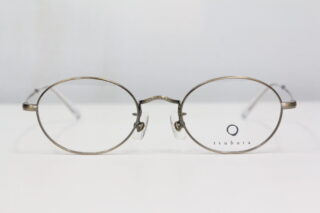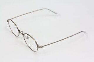 オーソドックスなオーバル型の細メタルフレーム。シックなアンティークゴールドは人気が高いですね。