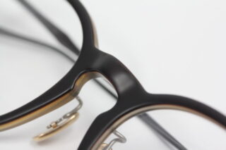 テンプルもブラウンカラーで統一。美しい彫金も施されています。