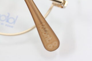 クリアブラウンのモダンにはメガネのマークとブランドロゴが入っています。