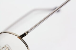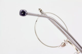 ワイヤーの様な造形のテンプル芯を包むプラスチック生地。柔軟性がよく、かけ心地もいいと好評です。