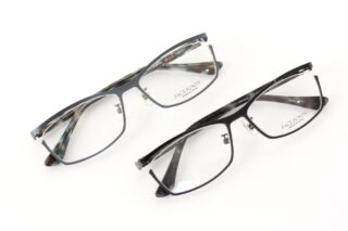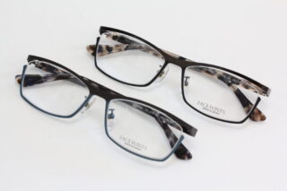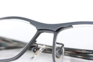 スクエア型のメタルフレーム。レンズ縦幅は狭め、男性的でスタイリッシュな印象ですね。