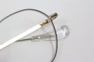短めコロンとしたモダンは無色透明でフレームとのバランスがとても良い。