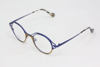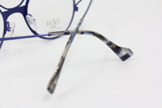 目が覚めるような鮮やかなブルーと、ビタミンカラーなイエローの組み合わせが目を引くメタルフレーム。