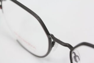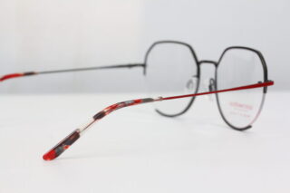 フロント部分のシックなグレーとは対照的なレッドのテンプルとモダンが映えますね。