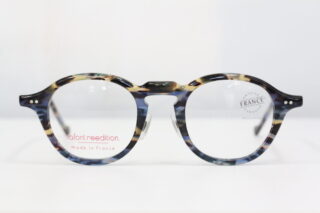かなり天地幅が広く丸みの強いレンズと、フレンチヴィンテージスタイルを象徴する高い位置にあるブリッジがポイント。