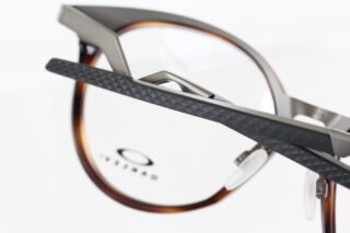テンプルの形状がサイドビューにもアクセントを添え、控えめなドットで描かれたOAKLEYのアイコンがよりテンプルデザインをより引き立ててくれます。