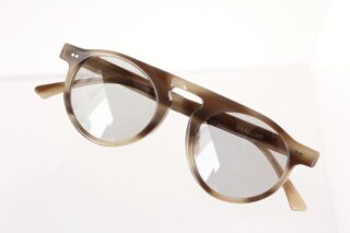 ブラウンのマーブル柄フレーム。色の濃淡がシックでシロップクリアとは対照的な印象です。