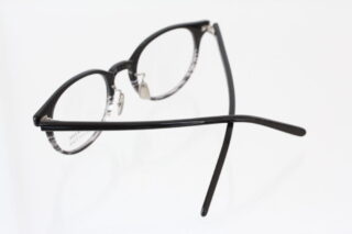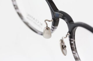 最近ボリュームのあるプラスチックフレームが増えていますが、こちらはリムテンプル共にやや細身な仕上がりでお顔に乗せても重さを感じにくく軽やか。