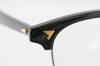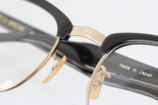 ブリッジ、レンズを囲むメタル枠や飾り鋲はゴールド。