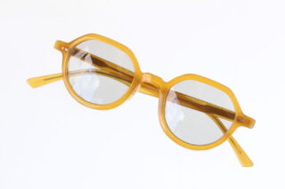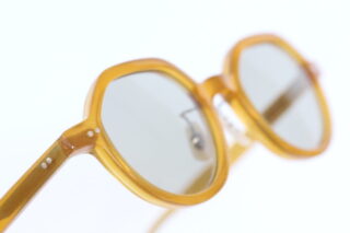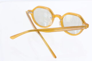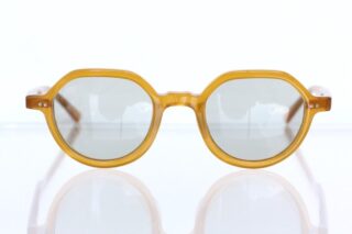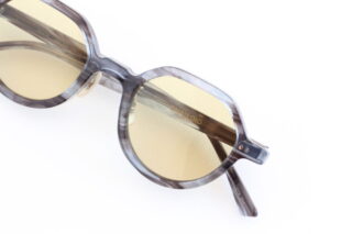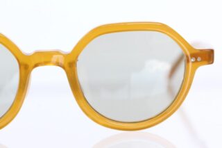 ビンテージフレームを彷彿とさせるイエローフレームにオーソドックスな薄めグレーカラーのレンズが入ったサングラス。