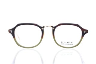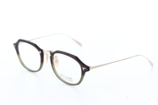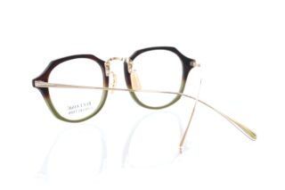 リム上側は濃いめブラウンのデミ柄、下側は落ち着いたカラーのグリーン。