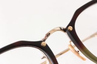 やや主張の強い形がクラウンパントフレームといった印象がありますが、このモデルはブリッジとテンプルが細メタルパーツ。