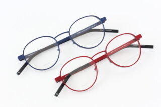 赤と青、対になるカラーを仕入れました。実際にお顔に乗せて、フレームの立体感をお楽しみください。
