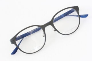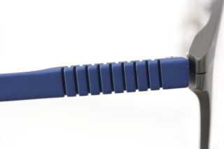 テンプルはチタニウム素材、シックでありながら鮮やかなブルー。