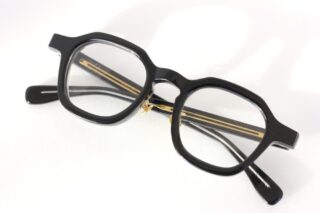 変形クラウンパントフレーム。レンズシェイプは多角形なニュアンスが感じられますね。