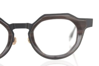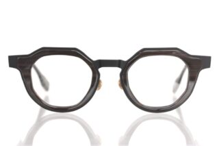 艶を抑えたマットブラックのシートメタルがベース、レンズをはめ込むリム部分にこげ茶っぽいセルワッパが入っています。