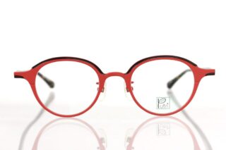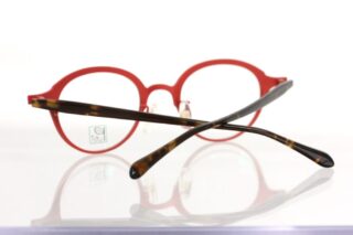 やや黄を帯びた赤、朱色をベースとしたボストンメタルフレーム。