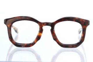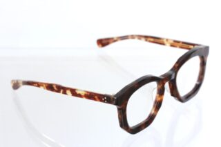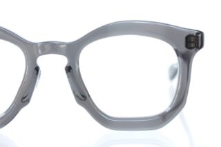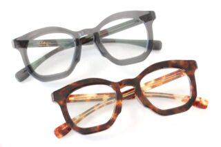 しっかりガッツリとボリュームを持たせたフレーム。レンズシェイプはティアドロップっぽさのあるウェリントンで紹介。一度見たら忘れられない印象の強さです。