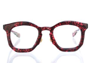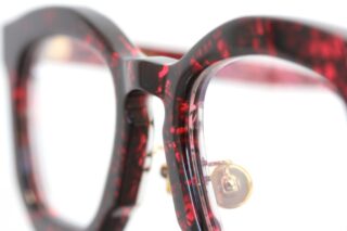 透け感があり赤くマーブル模様が特徴的なフレーム。