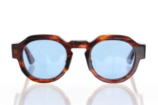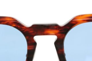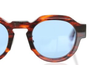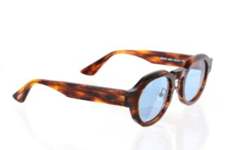 深みのあるブラウンのべっ甲柄フレームにクールなブルーレンズを組み合わせることでヴィンテージな香りを漂わせながらも、モダンな雰囲気を演出しているサングラスです。