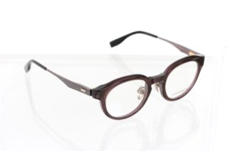 ややボリュームのあるボストンフレームですが、ブロウ部分のラインが智元に向かって下がることで柔らかな印象に。