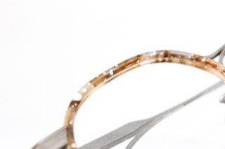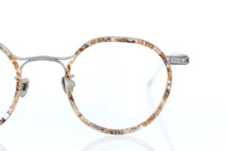 フレームデザインはFilton、メタル部分の表面加工はSeleniteの技法を。