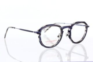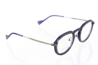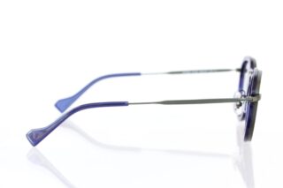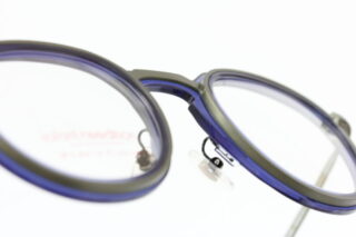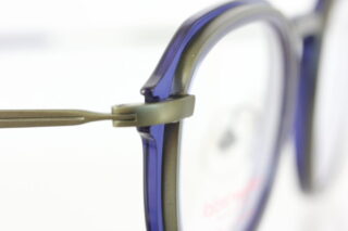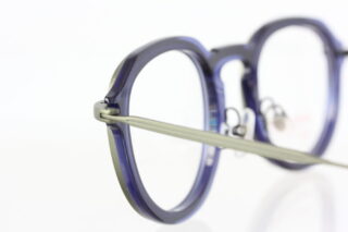 透明感のあるブルーのアセテート生地に、緑っぽさのあるメタル枠が張り合わさったコンビネーションフレームは、フレンチシックの王道ともいえる上品さを漂わせています。