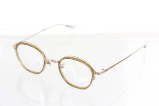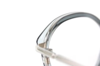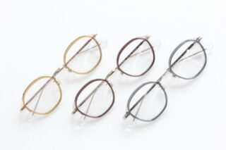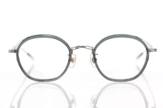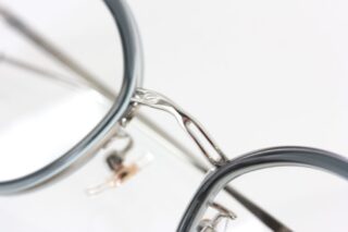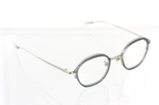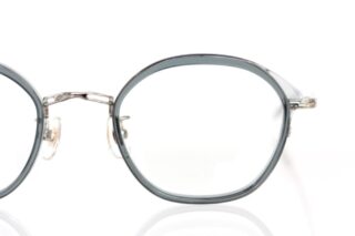 繊細なメタルフレームと透明感とニュアンスのあるグレイッシュカラーのプラスチック枠との組み合わせ。