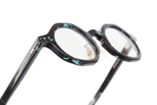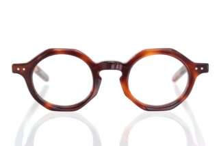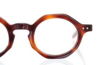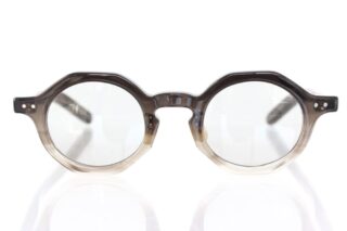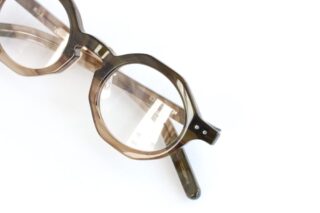 インパクトが強くなりがちなオクタゴンをソフトなエッヂにアレンジすることで、遠近の異なる表情を持ちゆとりのある縦幅に設計された実験的な小ぶりのオーバルタイプ。