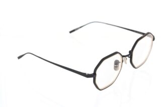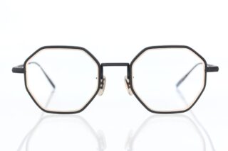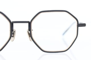 幾何学的な美しさを感じさせる八角形のレンズシェイプは、シャープな角を持ちながらも硬すぎず、知的でモダンな印象のメタルフレーム。