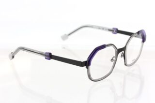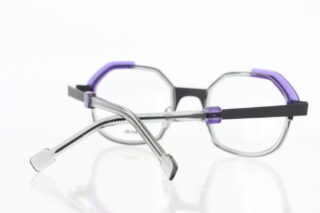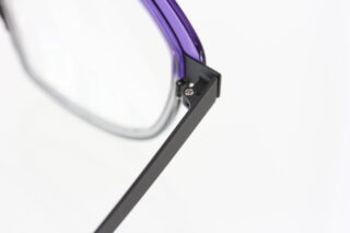 角を落とした絶妙なライン、エッジーでありながらどこか親しみやすさも感じられる多角形フレーム。