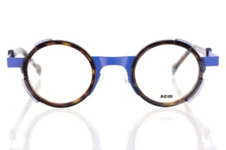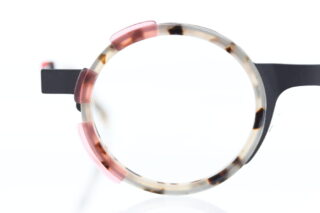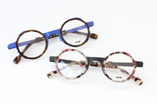 クラシックの代表ともいえる丸眼鏡をベースに、大胆な色使いを掛け合わせたまさに”アートピース”のような一本。