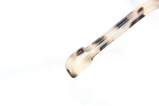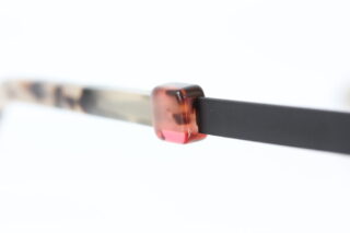 テンプルの途中から先セルにかけて再びべっ甲柄風のアセテートが現れる構成は、フロントとの繋がりが感じられる巧みなデザインです。