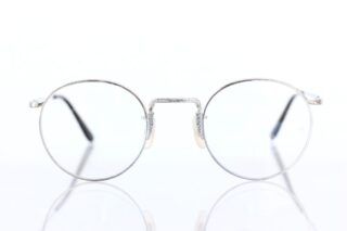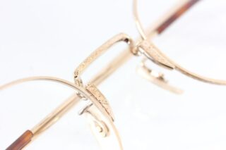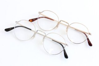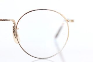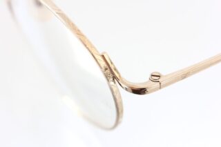クラシックなラウンドに近いボストン型を基調としながら、随所に繊細な装飾を施した芸術性の高いメタルフレーム。