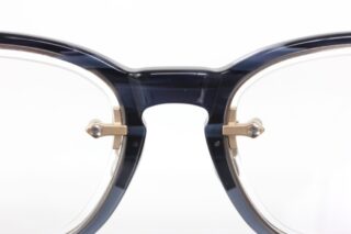 細かな彫金が施されたインナーリムは遠目には見えませんが、だからこそ密かなこだわりが感じられる上質なメガネに。
