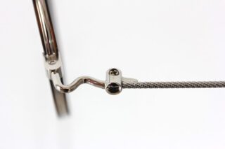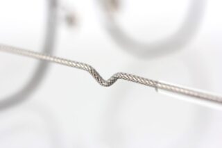 職人技を感じさせるスネーク状のメタルワークと、細かな模様が刻まれたワイヤーテンプルが独創的な構造。