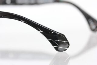テンプルの先、そしてフレーム一体型の鼻盛りにも同様の柄が入っています。