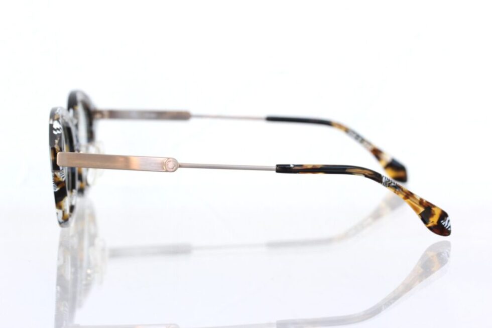 ラウンドに近いレンズシェイプは、顔なじみが良く、それでいてどこかアートな個性を感じさせるフォルム。