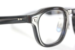 角をわずかに落としたパリジャン型の黒縁フレームは、セルロイドならではの独特の艶と深みが魅力です。