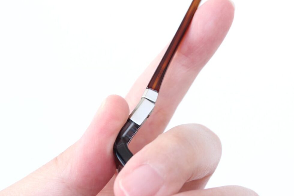 テンプル部分が外に広がることで掛け心地の良さにも貢献。